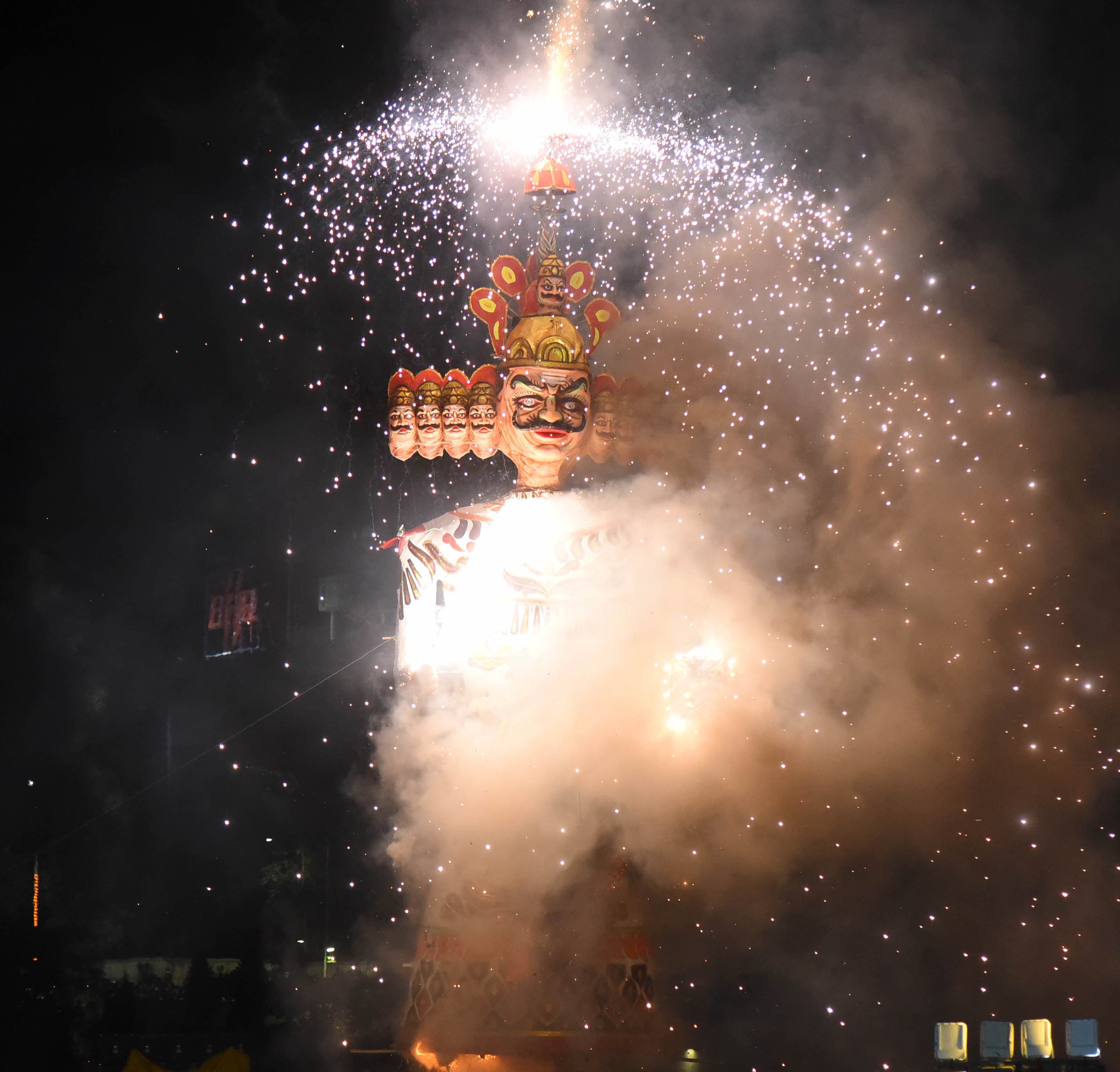 Nagpur : Crowds gathered at the Dahan (burning) ceremony of Ravana, Kumbhakarna and Meghnath at KP Ground in Nagpur