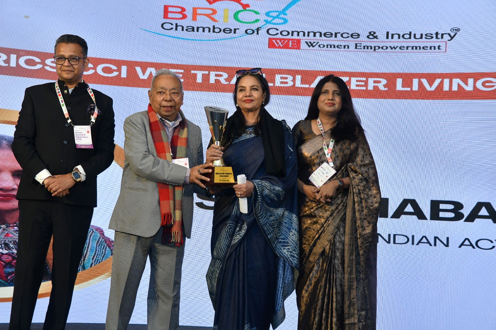 Other eminent names felicitated during the Summit BRICS CCI WE: Trailblazer Global Women Icons included Ms. Navika Kumar, Group Editor-in-Chief, Times Now & Times Now Navbharat; Ms. Monica Monteiro, Chairperson, BRICS WBA Women Business Alliance Brazil; Ms. Glaucia Guarcello, CEO, HSM, Singularity Brazil and Learning Village; Ms. Svetlana Smirnovaa, Chairperson, General Council, World Peoples Assembly; Ms. Maria Muhari, Founder & CEO, HET Group; Ms. Zhu Jingjing, Deputy Director and Hindi Host, Department of Asia-Africa Centre, China Media Group (CMG) and Ms. Annachiara Sarto, Director, Protection4Kids.