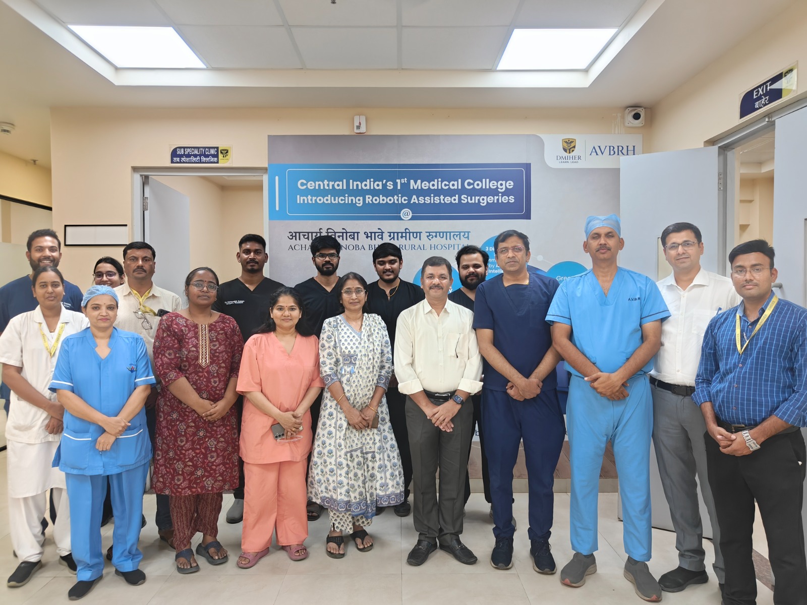 Acharya Vinoba Bhave Rural Hospital, Sawangi (Meghe), has achieved a significant milestone with the successful completion of 100 robotic-assisted surgeries under its advanced Robotic Surgery Program. This achievement highlights the hospital’s commitment to providing minimally invasive treatment using advanced surgical technology.